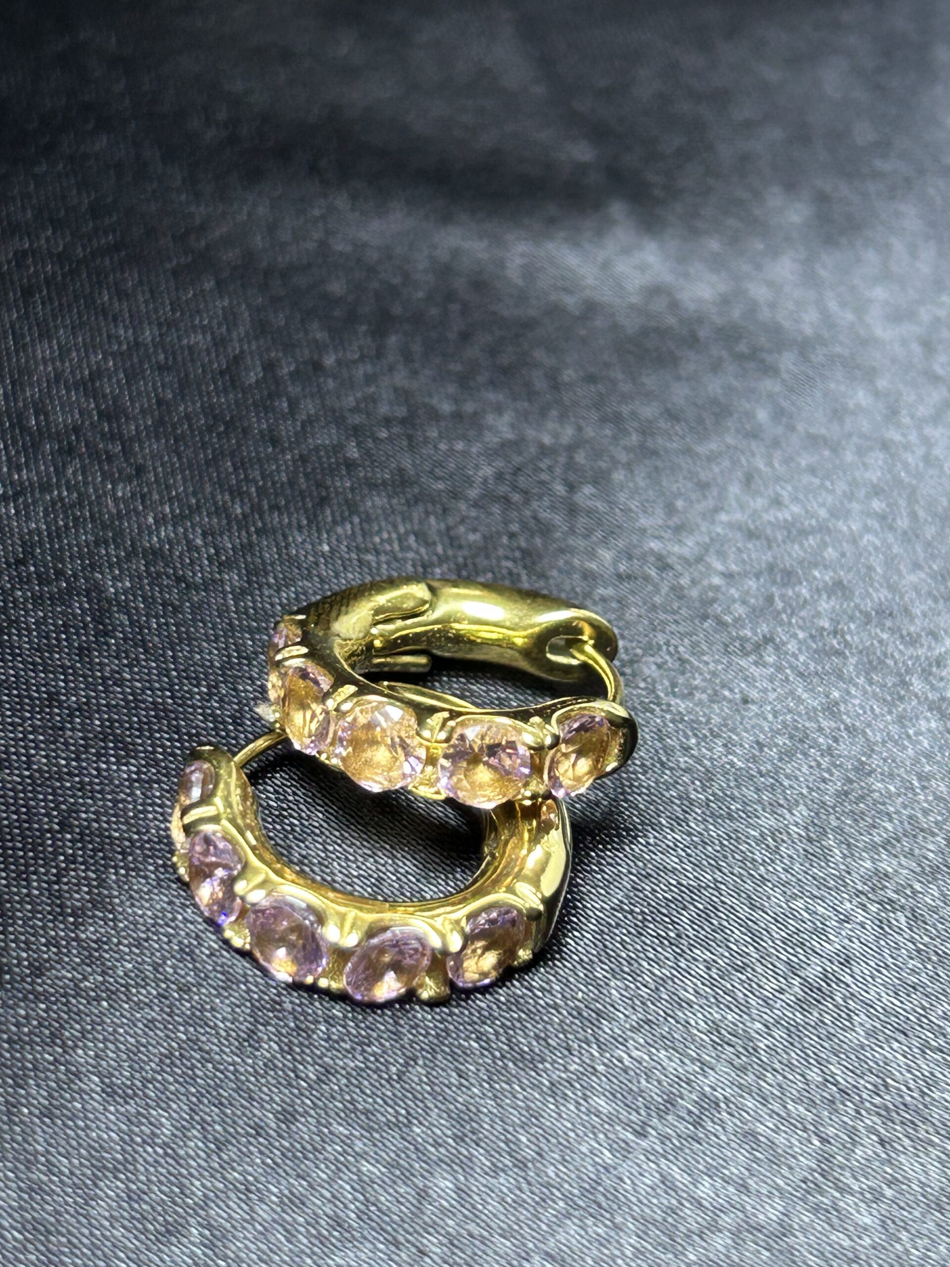 Keep your ear game radiant with our Golden Twilight Spark — a dainty hoop adorned with a row of shimmering sunset-toned crystals. Crafted with a luxe gold finish and set with faceted blush-amber stones, this piece brings just the right touch of color and sparkle to your everyday style.